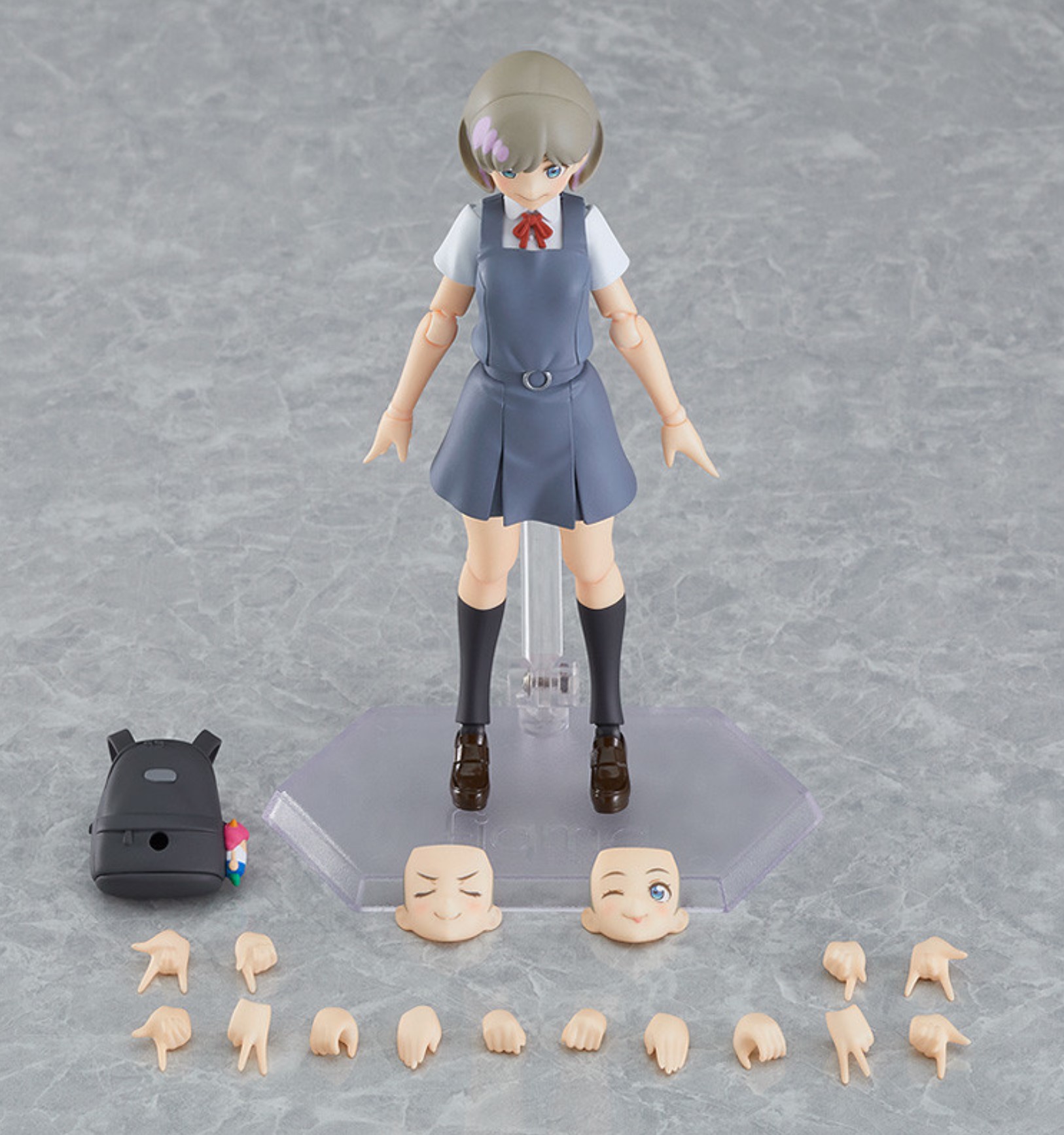 オプションパーツ 「スクールバッグ」手首は従来のfigmaよりも多い左右8種。可動支柱付きfigma専用台座が同梱。