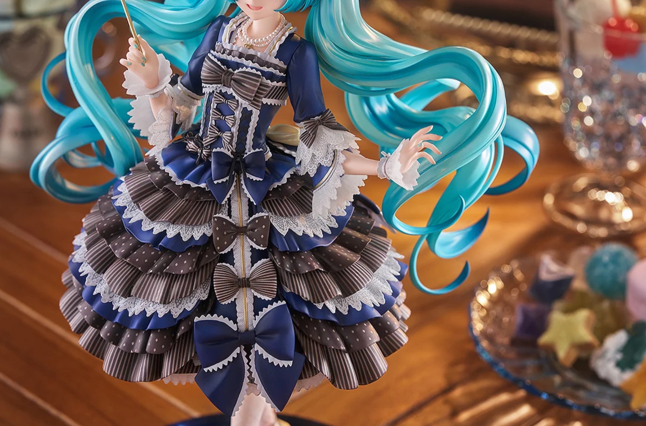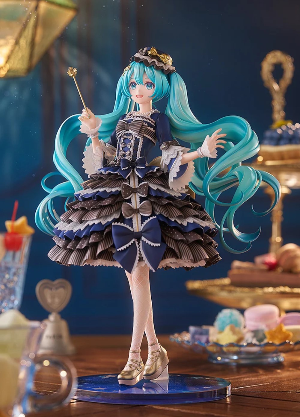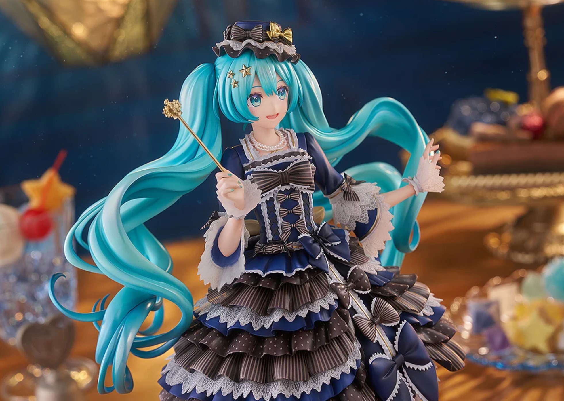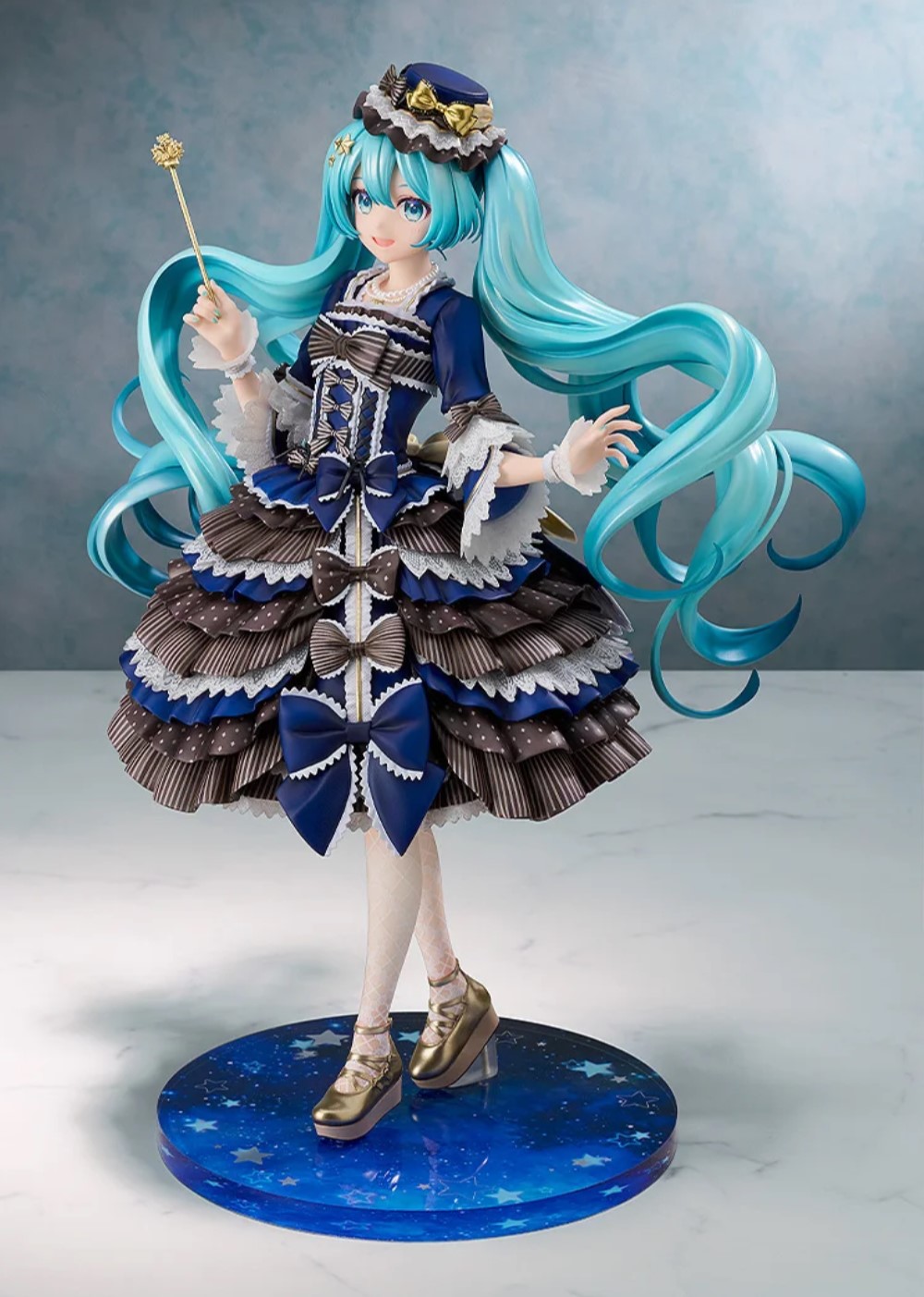 「キャラクター・ボーカル・シリーズ01 初音ミク」から、イラストレーター森倉円氏の描いたBABY, THE STARS SHINE BRIGHTの人気ドレス「流星ア・ラ・モードVer.」の「初音ミク」を1/7サイズでスケールフィギュア化。