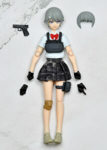 ミリタリー女子高生作品「リトルアーモリー」の武装JKノーネームキャラBの新スタイルが、figma化バリアントBは、ショートヘアスタイルのキャラクター+チェストリグ、トレイルランニングシューズを装備した“ロープロファイル”スタイル。