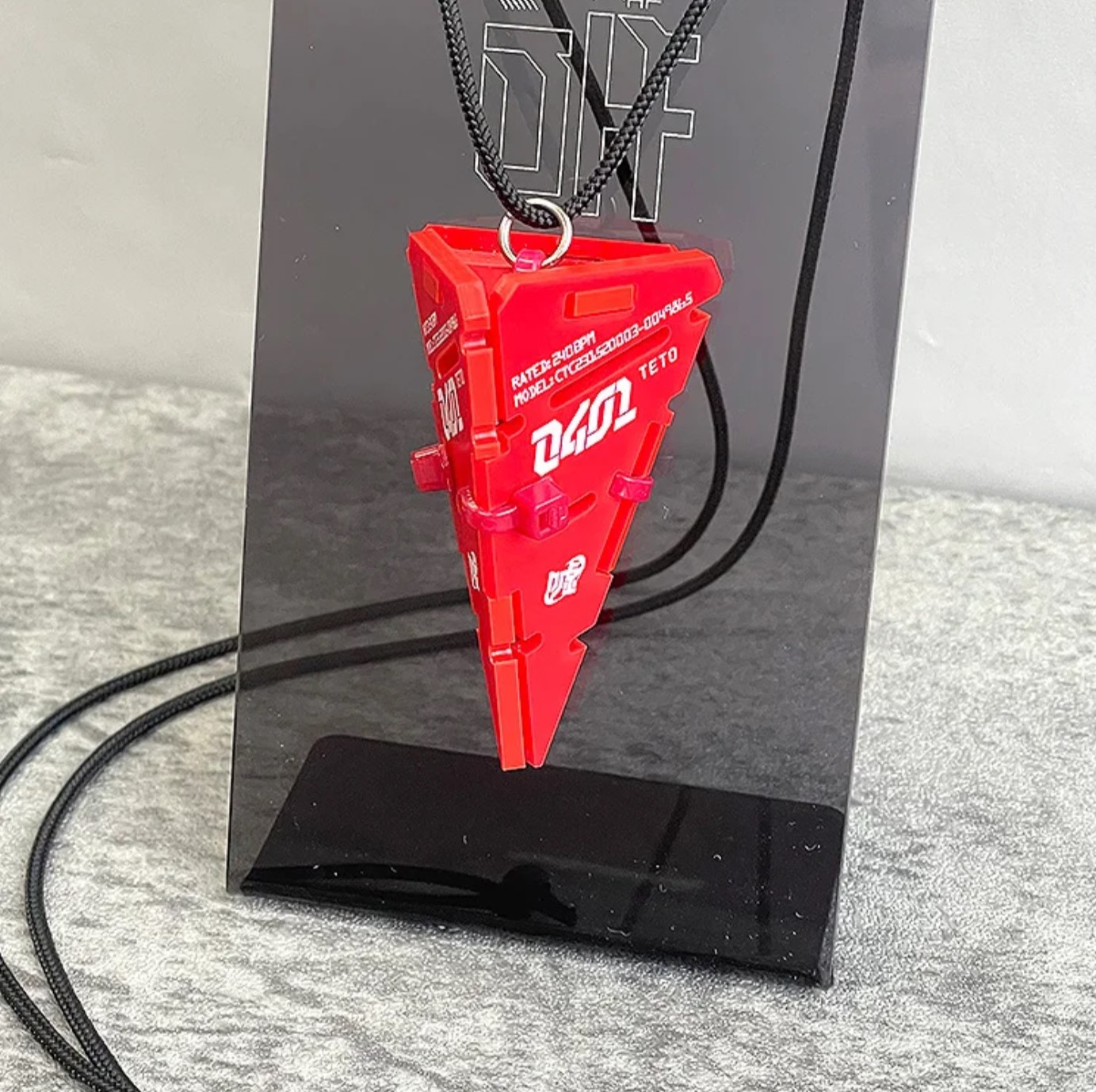 重音テトの髪型をイメージしたアクリル樹脂製のドリルペンダント。