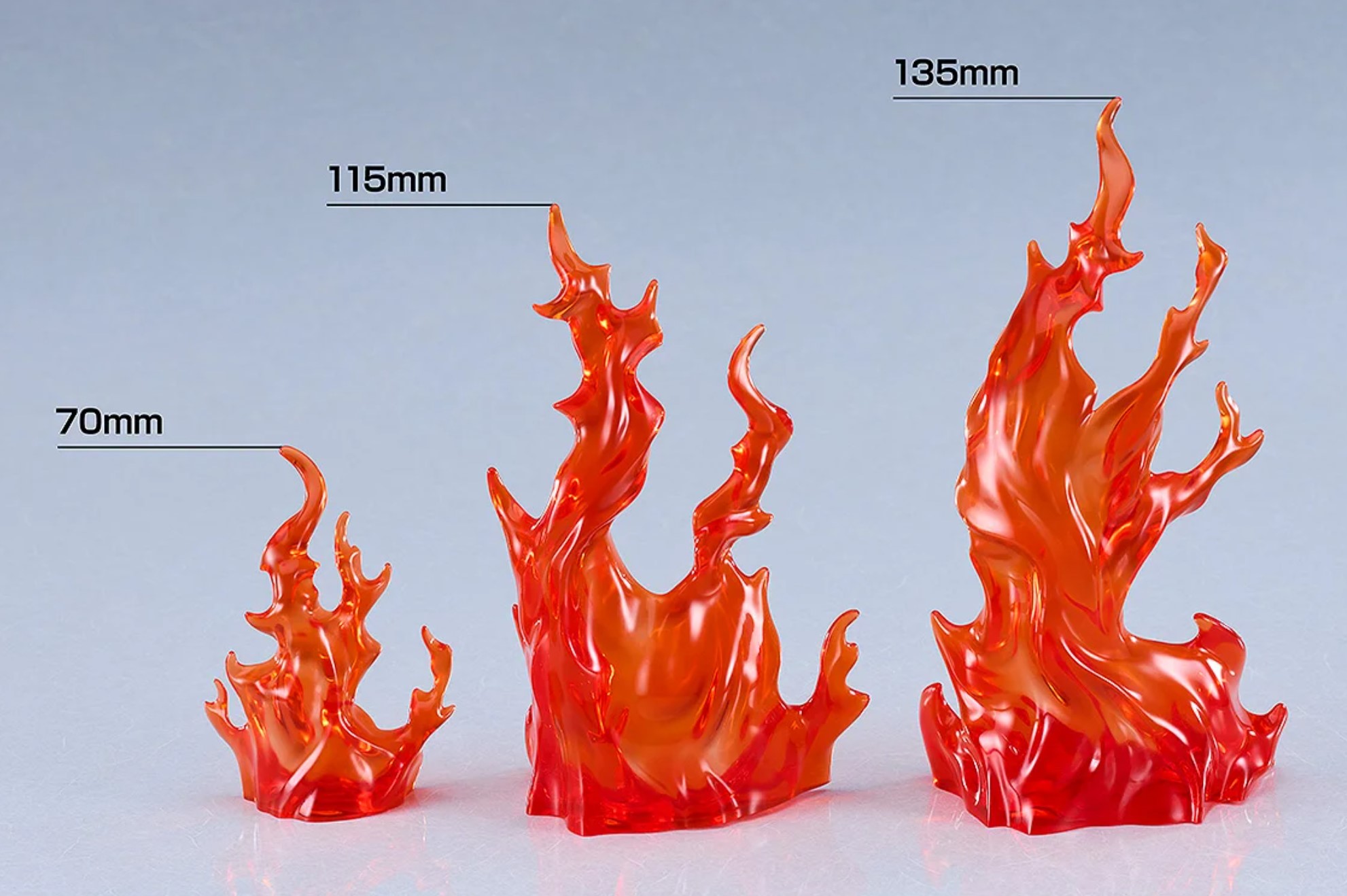 フィギュアやプラモデルのディスプレイを盛り上げる、「赤い炎エフェクトパーツセット」「青い炎エフェクトパーツのセット」が発売。